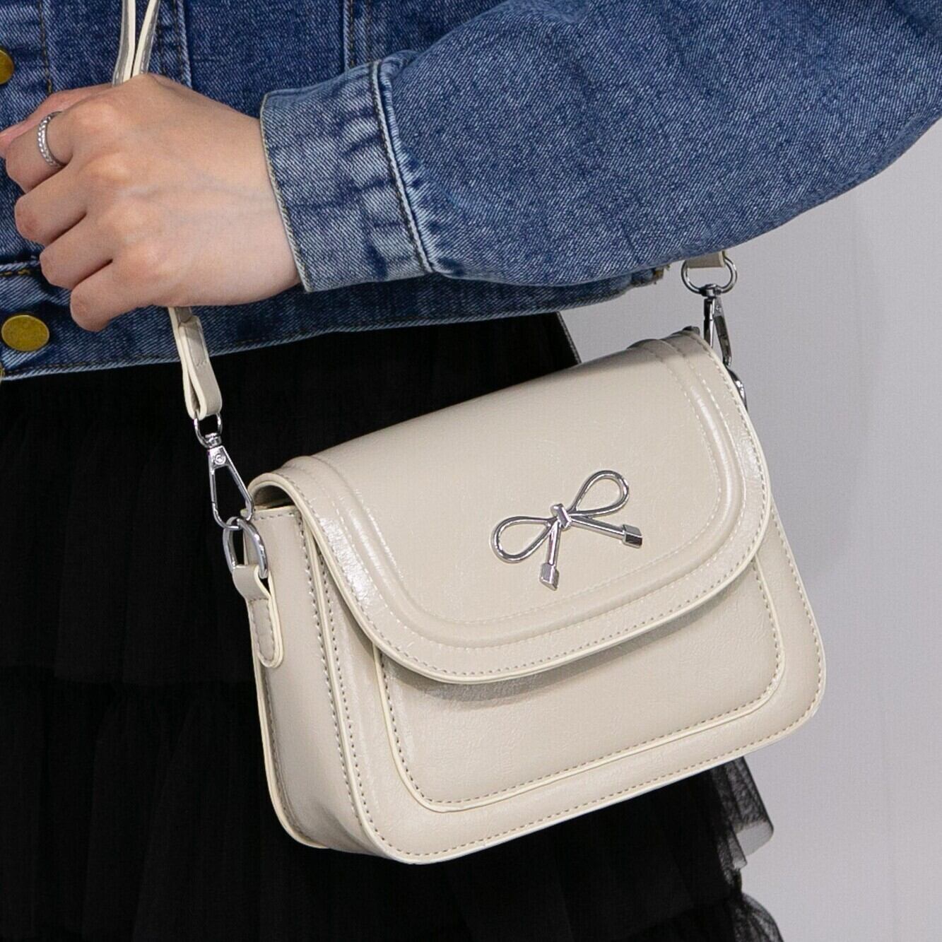 リボンパーツがかわいらしい、レトロな雰囲気のショルダーバッグ。