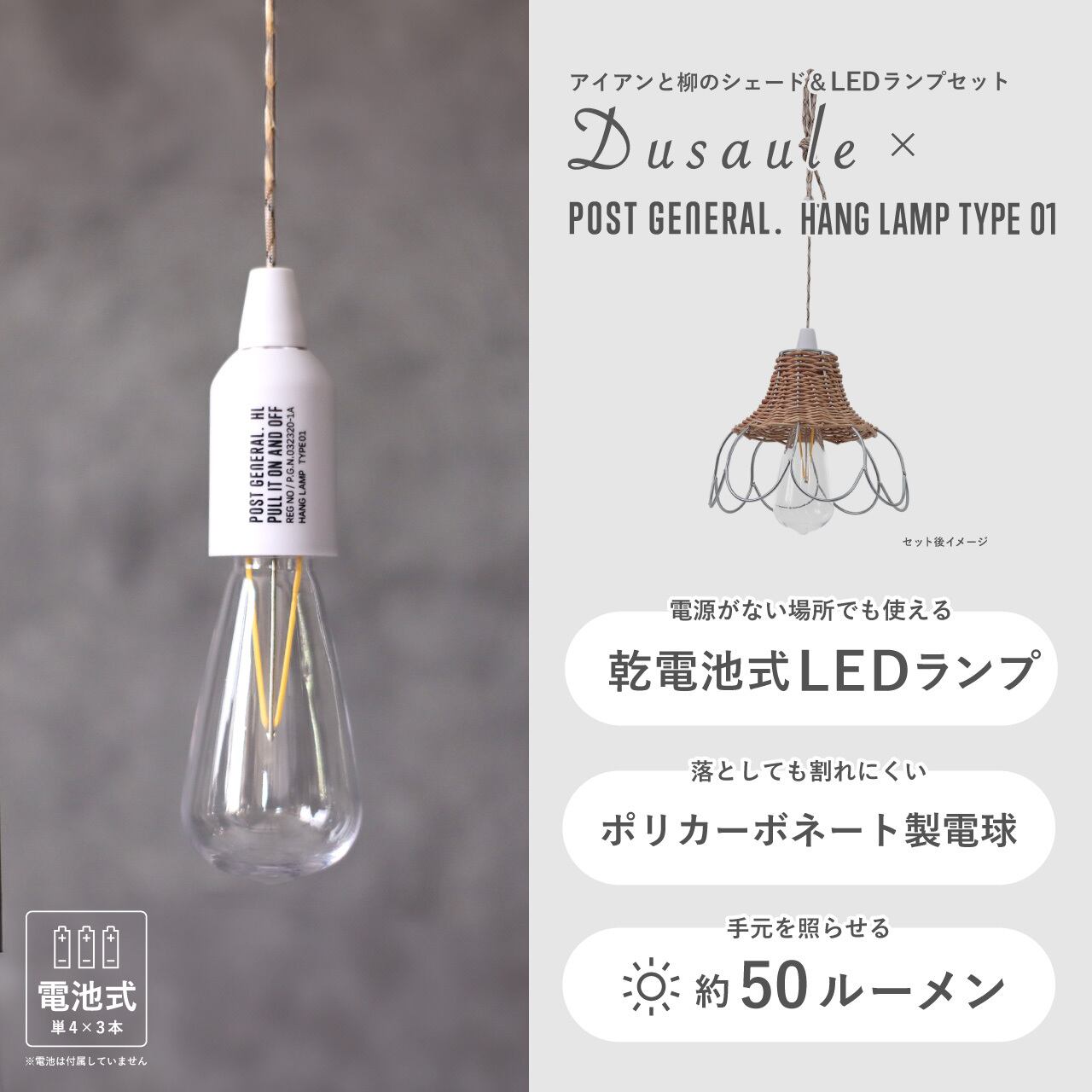 電池式LEDランプとアイアンと柳で編まれたランプシェードのセットです。