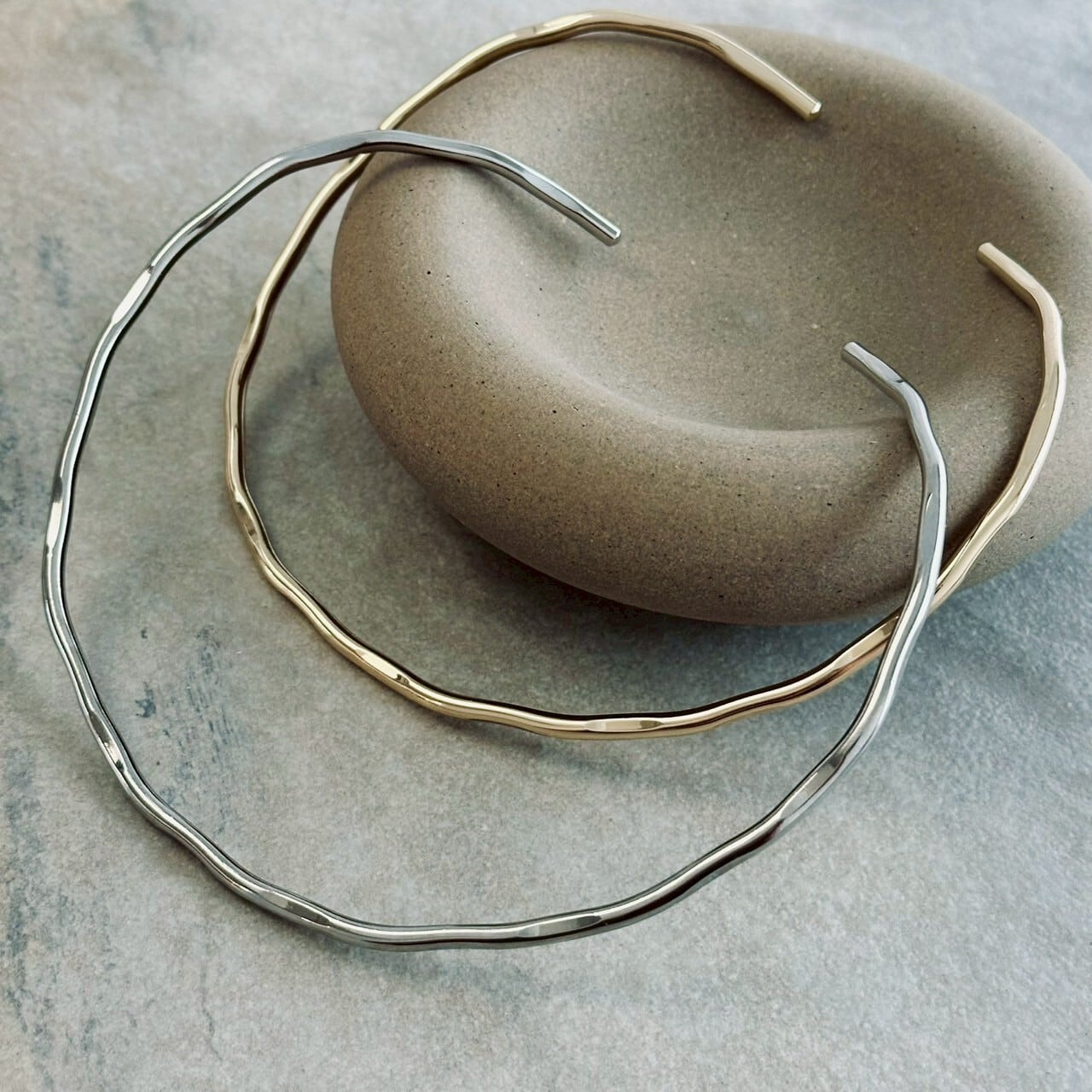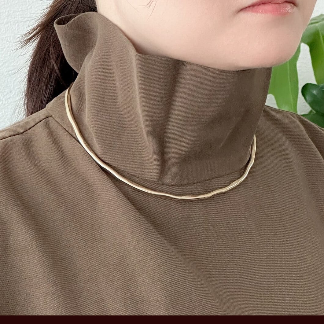 ゆらぎのあるラインが首元を印象深く演出する変形メタルチョーカー