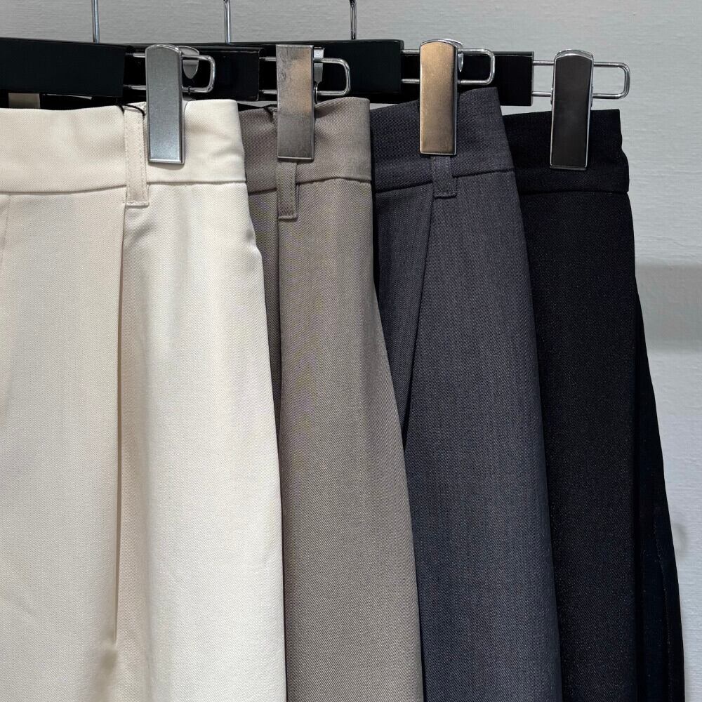 TRツイル素材を使用した、きれいめ見えのサイドタックコクーンパンツ。