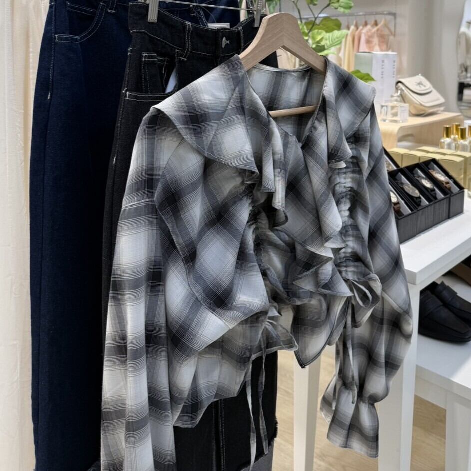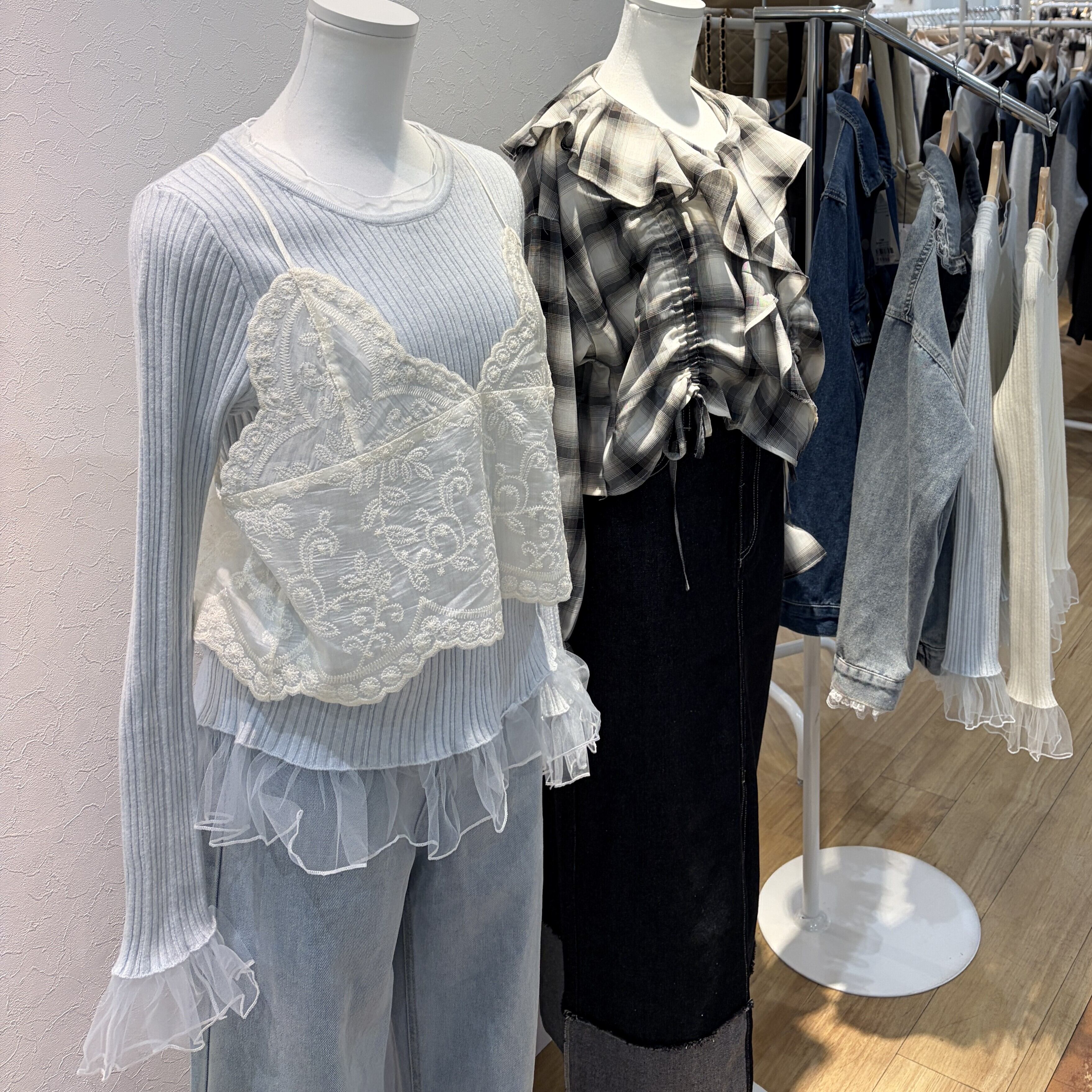ショート丈なので、ハイウエストのボトムと相性抜群です。