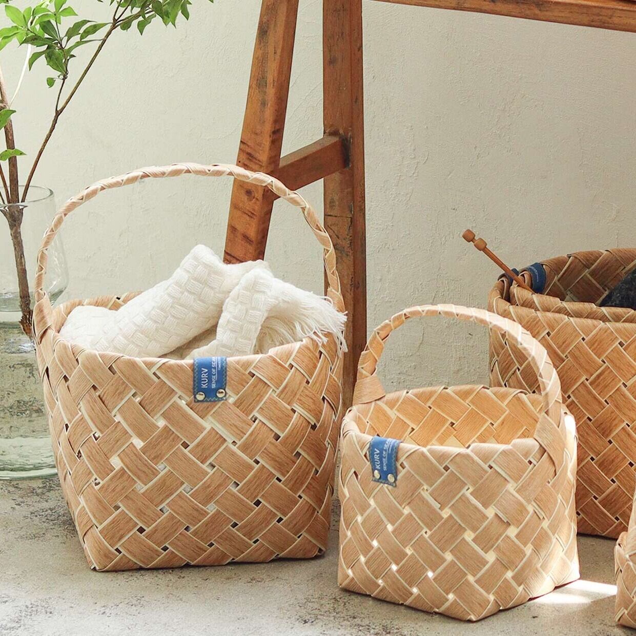 北欧の白樺かご風の軽量でシンプルなワンハンドルバスケット。