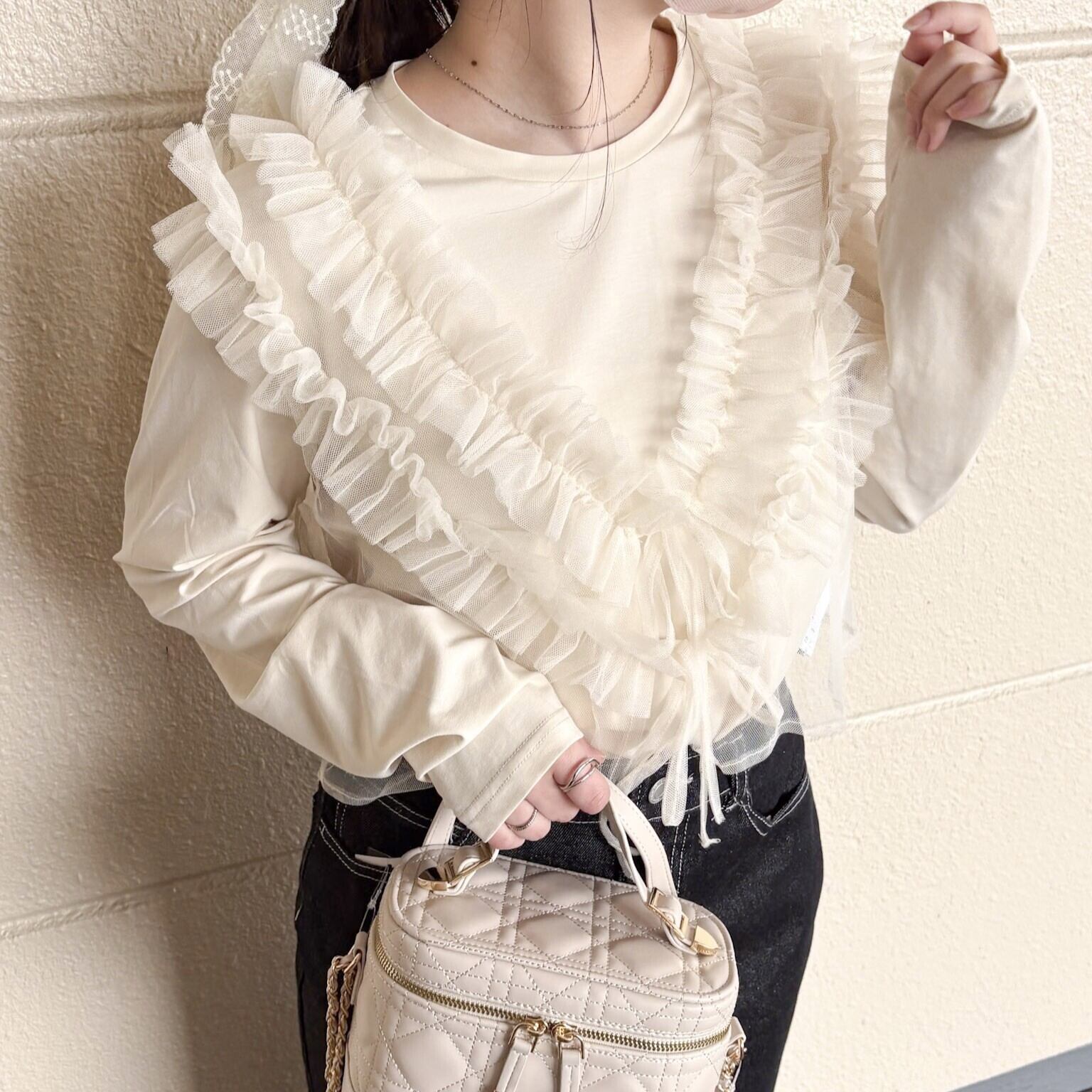 前後2WAYフリルチュールベスト+ベーシックカットソー