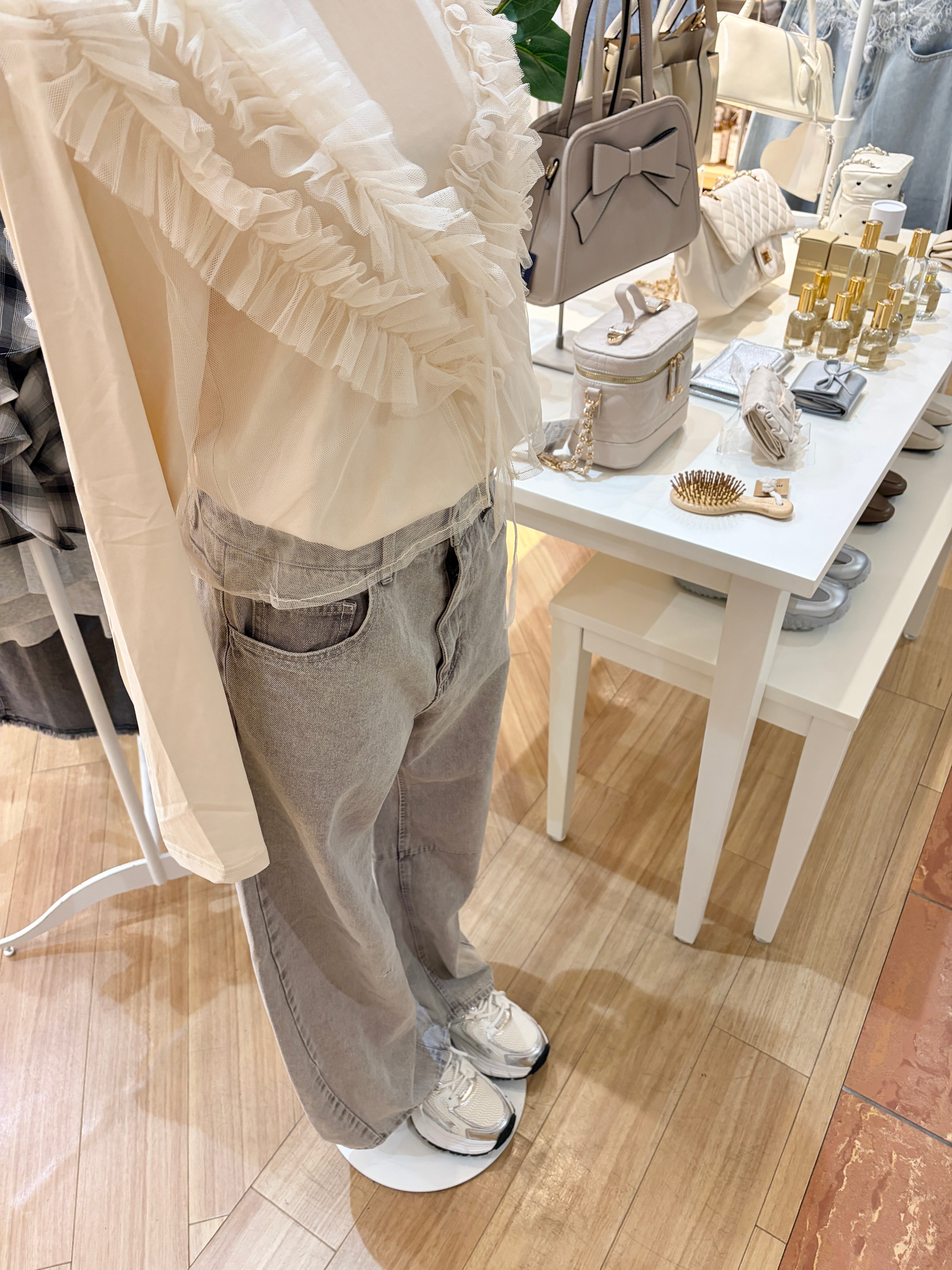甘さの中に抜け感をプラスした、大人のレイヤードスタイルが完成します。