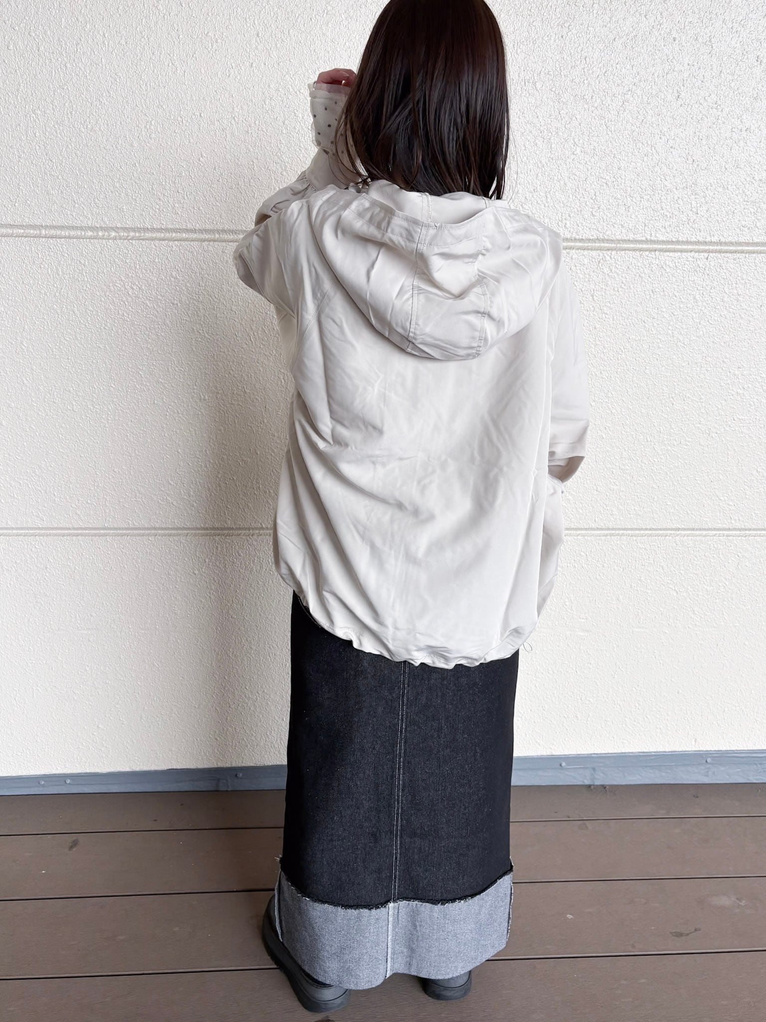 裾のドロストでシルエットを調整でき、カジュアルにもきれいめにも振れる万能アウター。