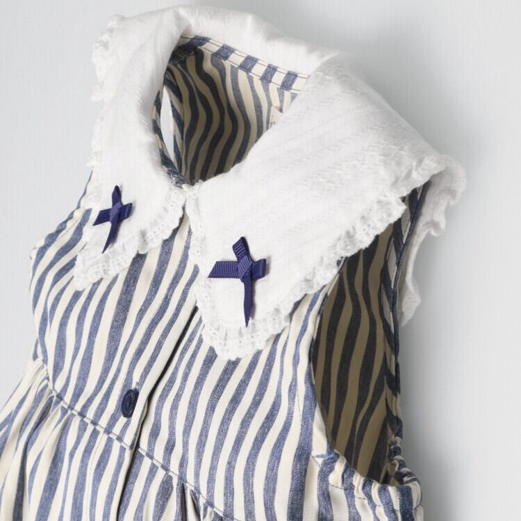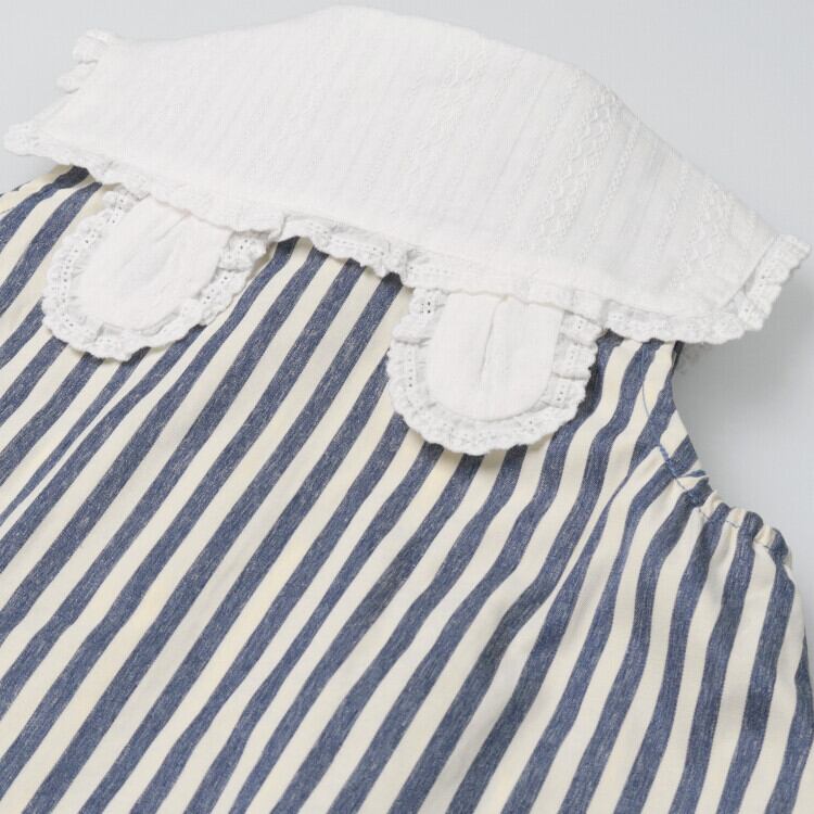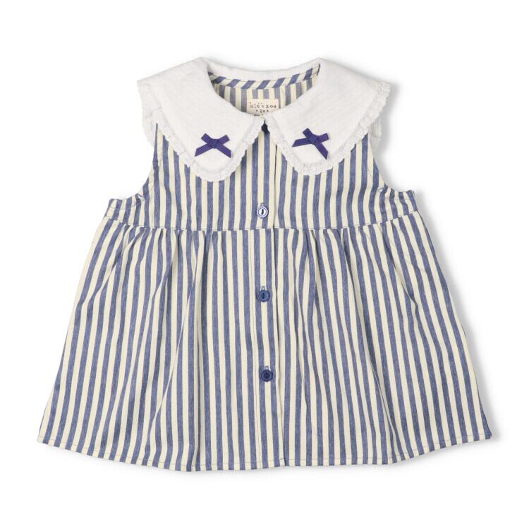 セーラー衿の前開きチュニック。さらりとしたストライプ柄が見た目にもさわやかな1枚。