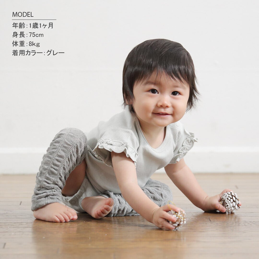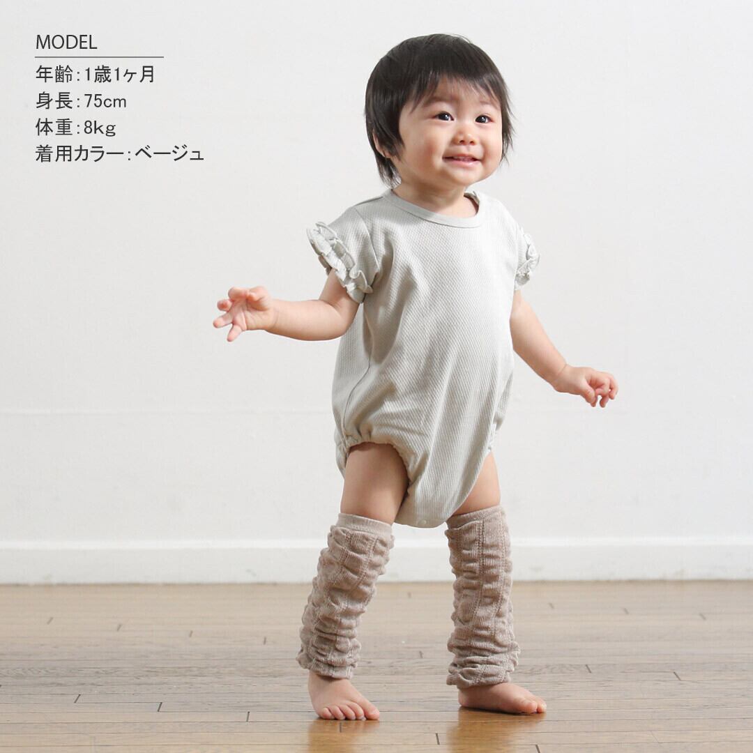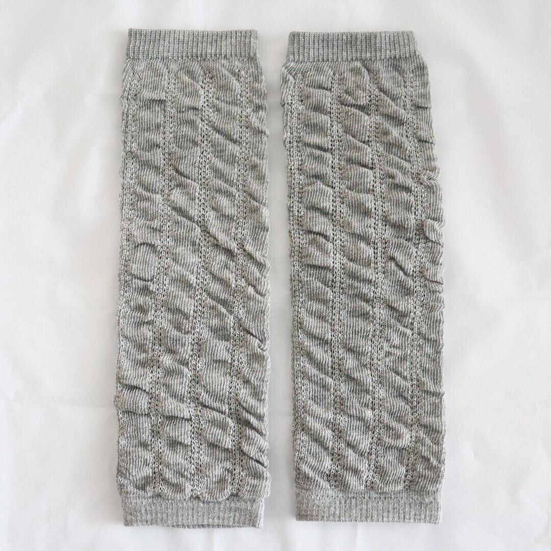 ベージュ・グレーのレッグウォーマーは端部分がリブ始末になっています。