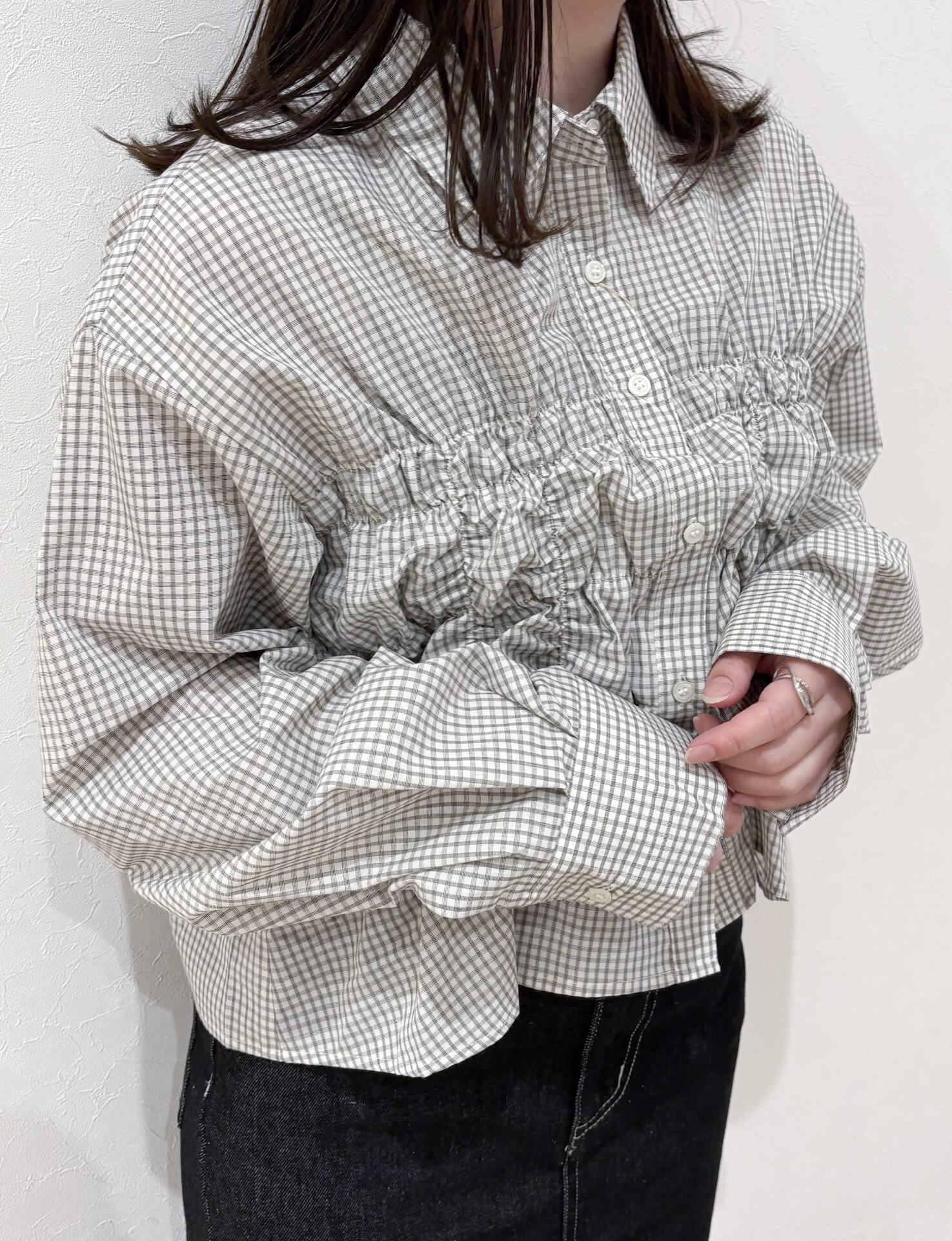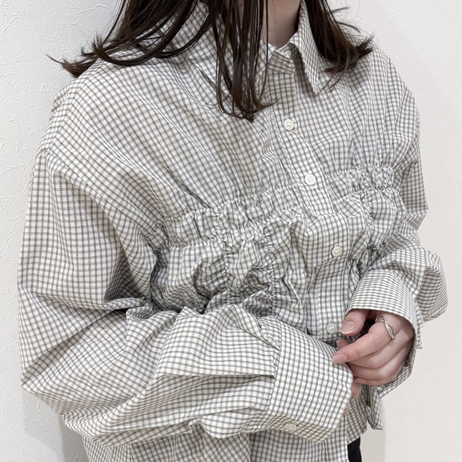 フロントにたっぷりと施されたシャーリングデザインが、