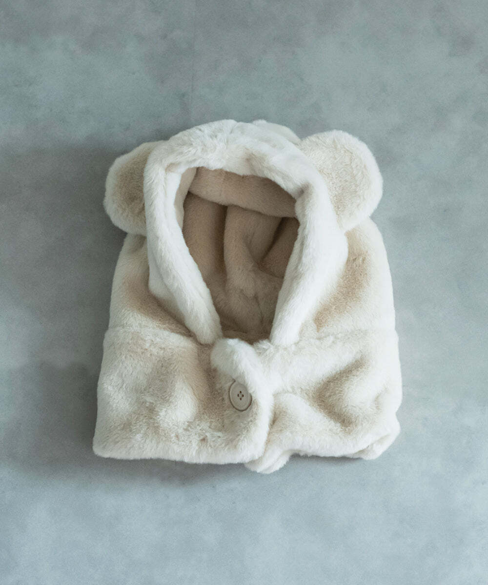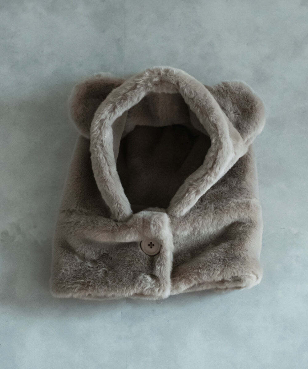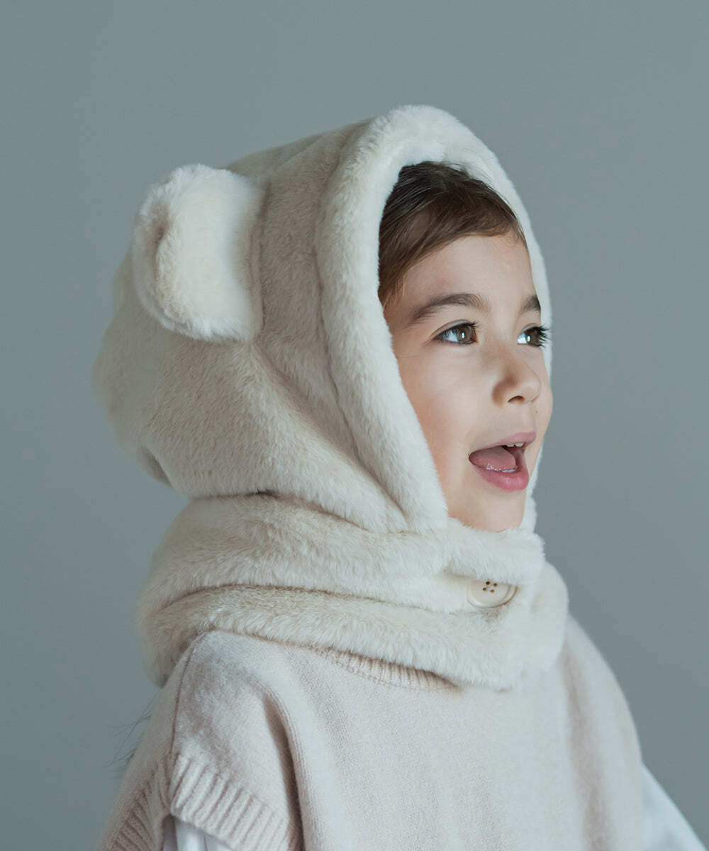 冬に大活躍のファーの帽子、可愛らしいくま耳付きです。