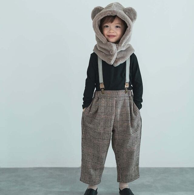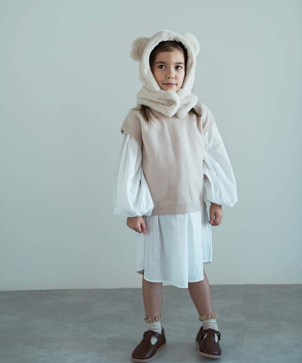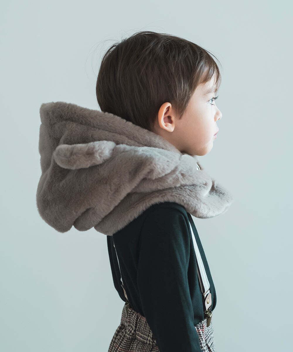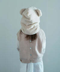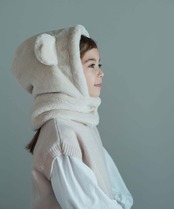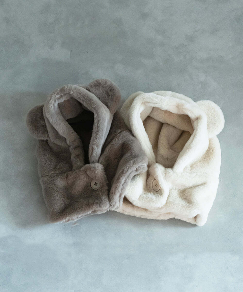 冬に大活躍のファーの帽子、可愛らしいくま耳付きです。