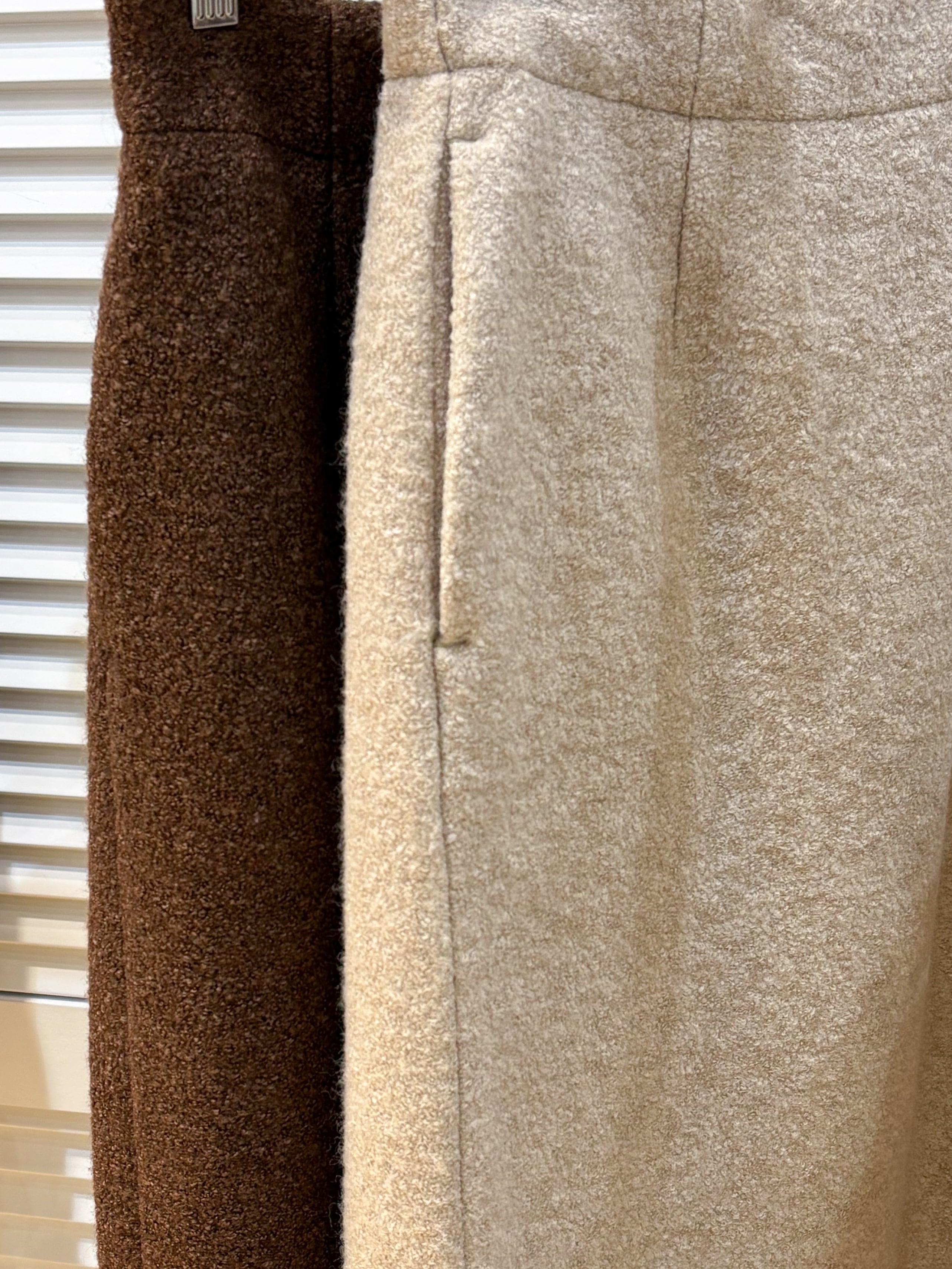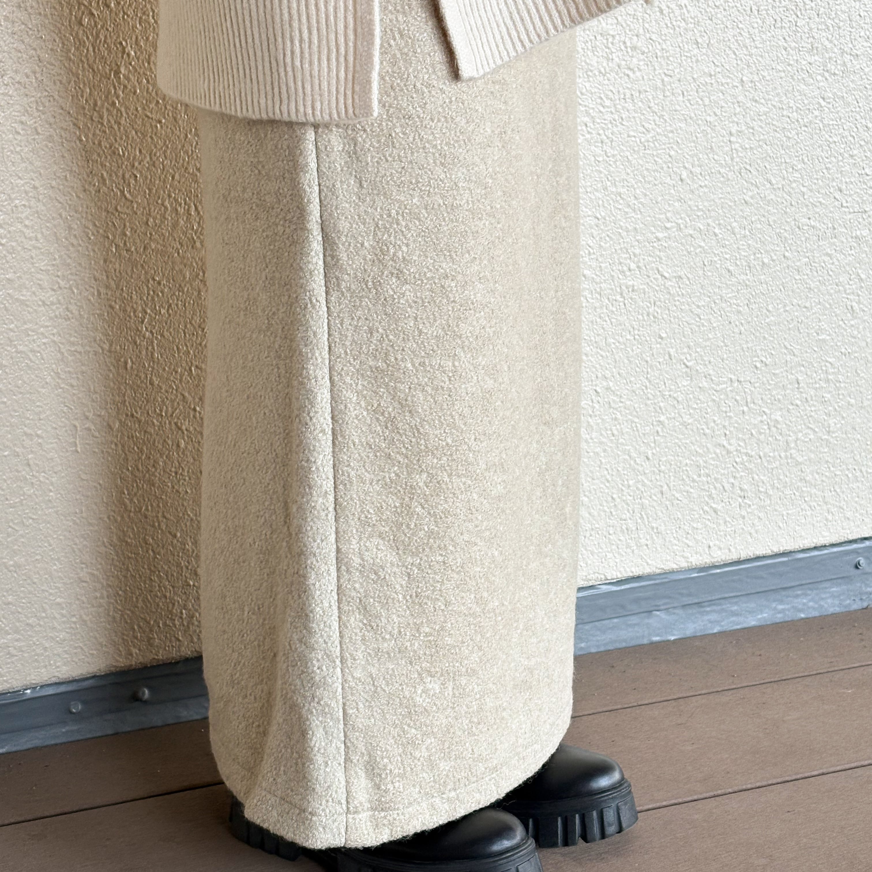 もこもこの肌触りと表面感が特徴的なブークレ素材を使用し、