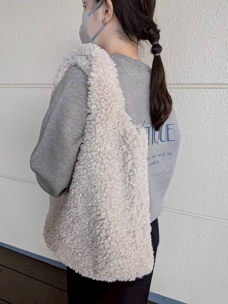 柔らかいカールボアのバッグは、横にしたA4サイズが、楽に出し入れできる大きめのトートバッグです。